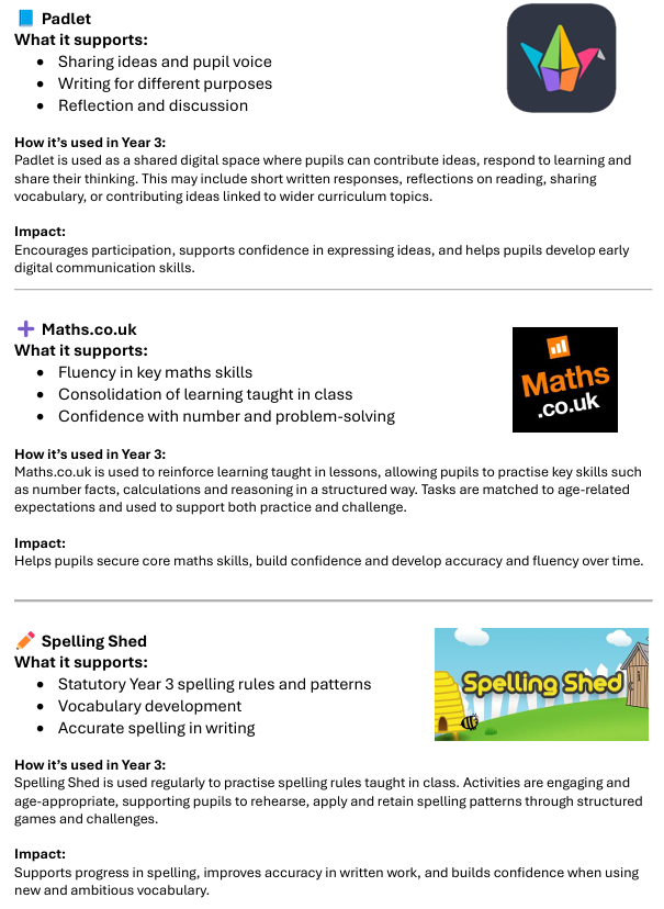 Teaching in Year 3 focuses on developing fluency, vocabulary and comprehension. Children learn to read accurately and with increasing expression, while also being taught how to understand and respond to texts in more depth. As they move through the year, pupils are encouraged to think carefully about characters, settings and events, and to begin making simple inferences based on what they have read.
